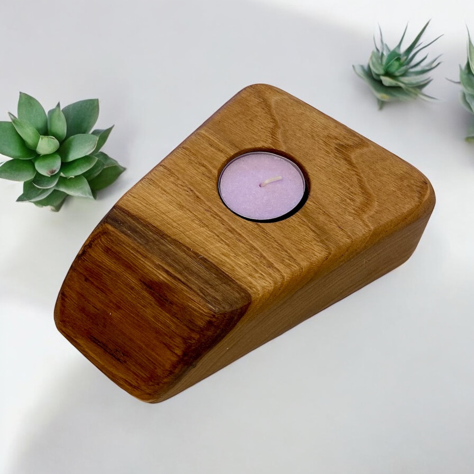 Portacandele artigianale forma irregolare realizzato in legno massello. Prodotto lavorato a mano, ogni differenza in forma e dimensione rendono unico ogni pezzo.