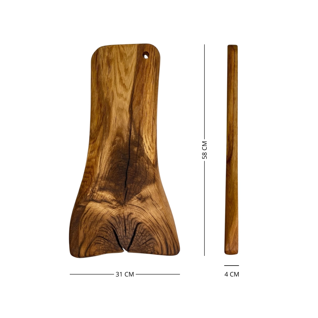 La quercia antica, con le sue venature distintive e le tonalità calde che variano dal marrone chiaro al marrone scuro, conferisce al tagliere un aspetto affascinante e ricco di storia. Ogni pezzo è unico, poiché la forma irregolare esalta le caratteristiche naturali del legno, rendendolo un vero e proprio oggetto d’arte da esporre in cucina o sulla tavola.
