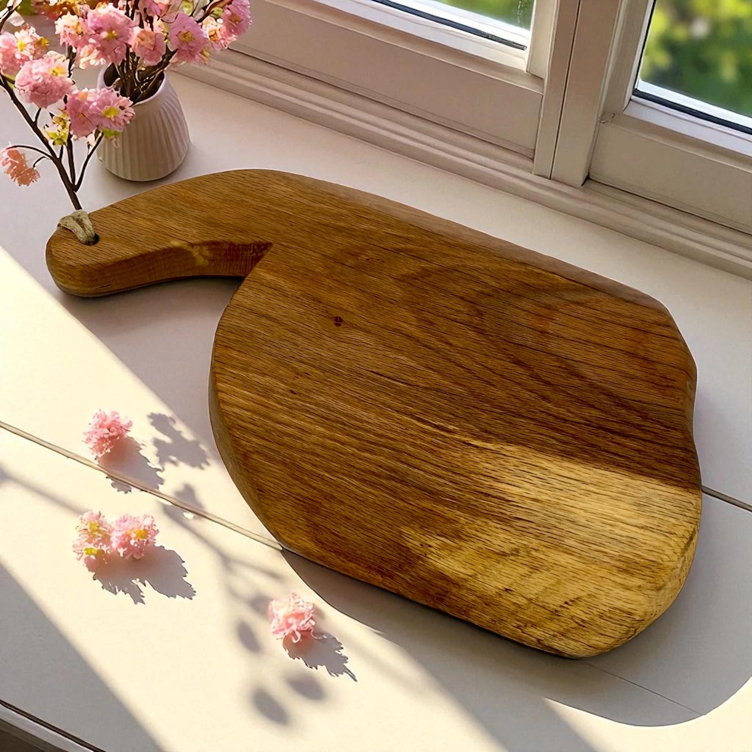 Il tagliere artigianale in legno massello di quercia antica è un perfetto connubio di funzionalità e design, un accessorio che arricchisce ogni esperienza culinaria e celebra la bellezza del legno naturale.