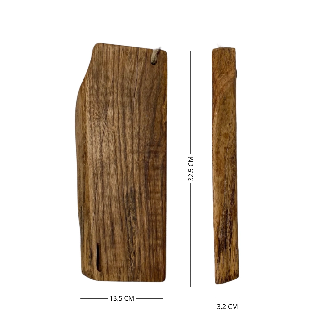 Tagliere artigianale in legno massello di castagno antico, caratterizzato da una forma irregolare e dotato di un manico, è un pezzo unico che unisce funzionalità e bellezza naturale. Ogni tagliere è realizzato a mano da artigiani esperti, il che conferisce a ciascun pezzo un carattere distintivo e autentico.