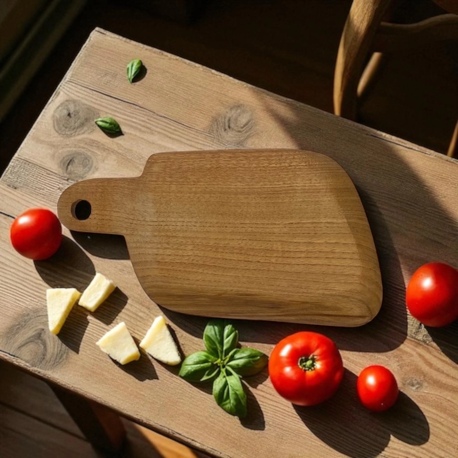 Il tagliere artigianale in legno massello di quercia antica è un perfetto connubio di funzionalità e design, un accessorio che arricchisce ogni esperienza culinaria e celebra la bellezza del legno naturale.