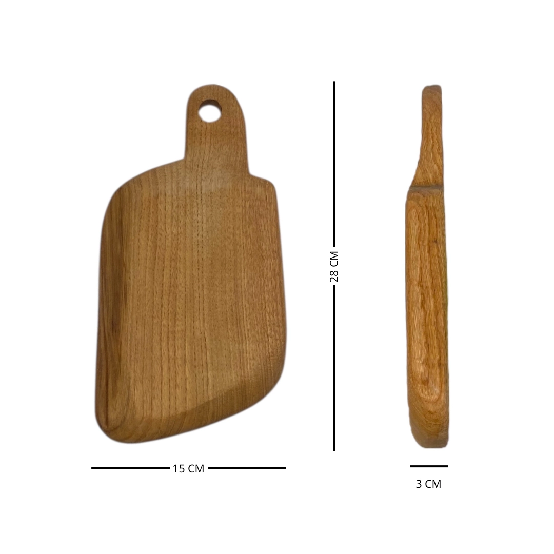La superficie è levigata a mano, assicurando una finitura liscia e piacevole al tatto, mentre le imperfezioni naturali del legno, come nodi e venature, aggiungono un tocco di autenticità e charme. La dimensione compatta lo rende facile da maneggiare e riporre, rendendolo un’ottima scelta per chi ha spazi limitati in cucina.
