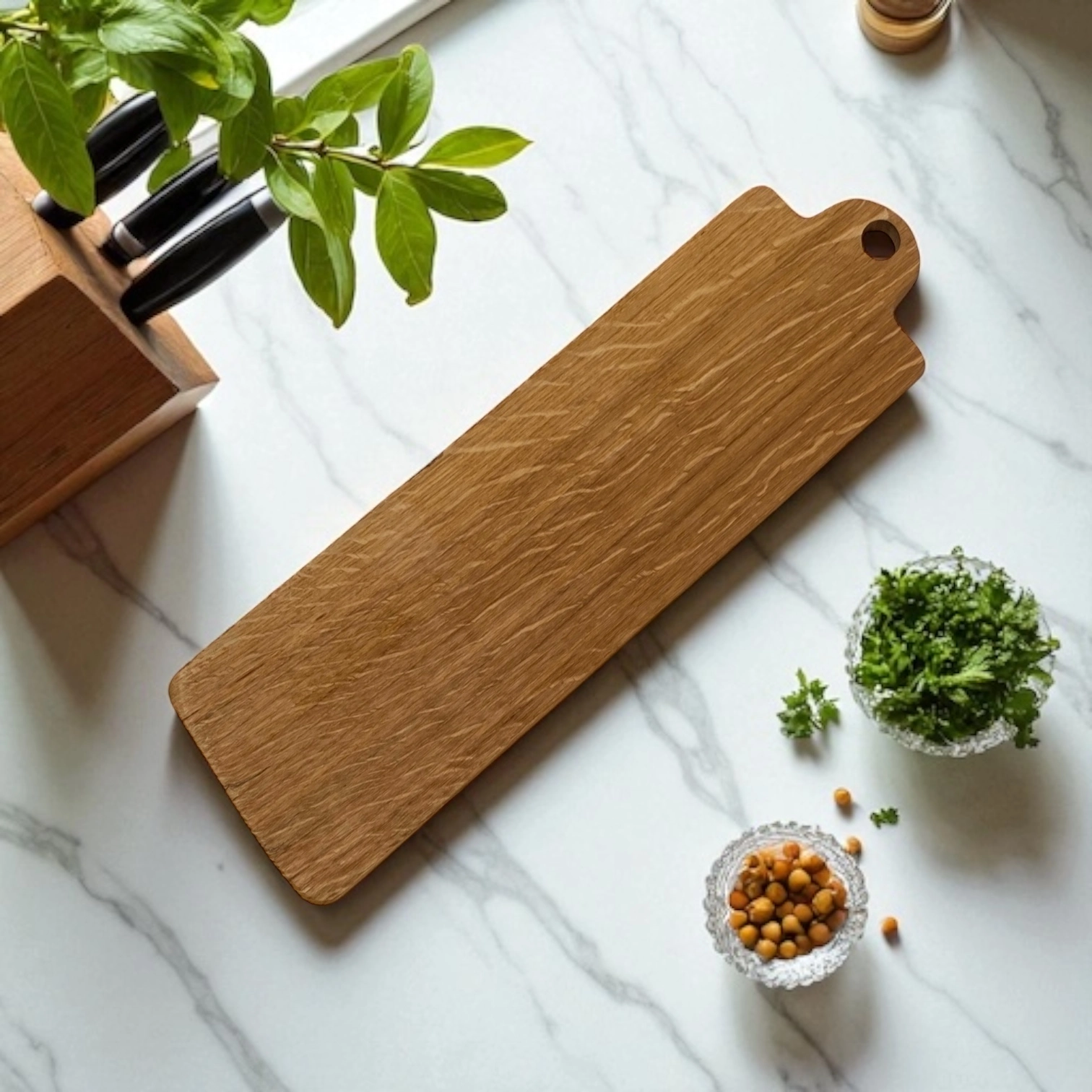 Il tagliere artigianale in legno massello di quercia antica è un perfetto connubio di funzionalità e design, un accessorio che arricchisce ogni esperienza culinaria e celebra la bellezza del legno naturale.