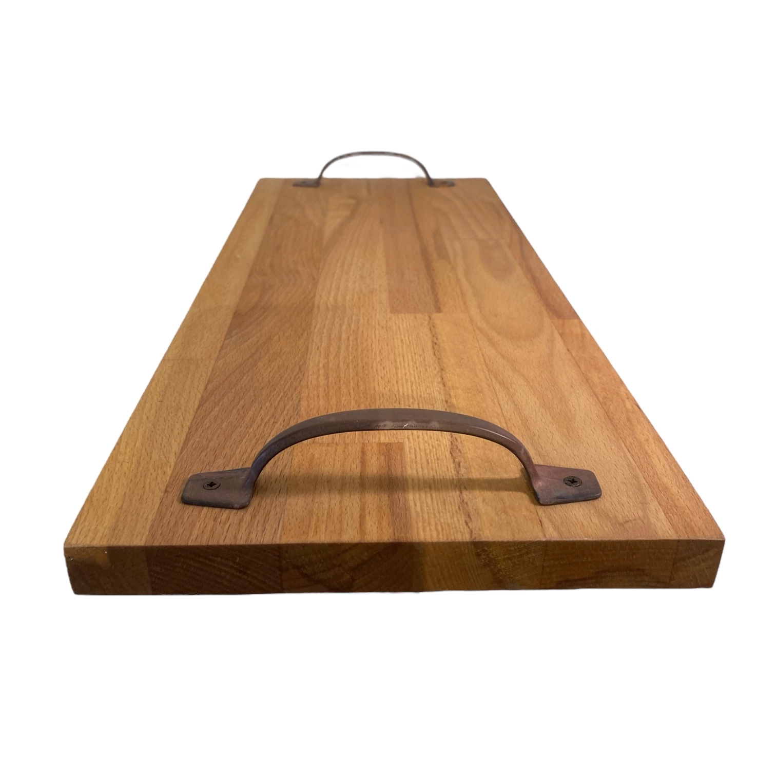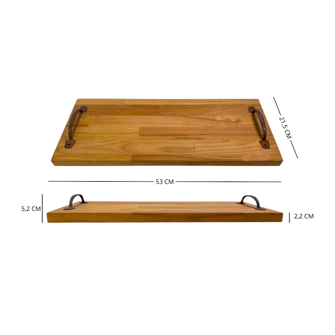 Vassoio in legno di faggio con maniglie in ferro