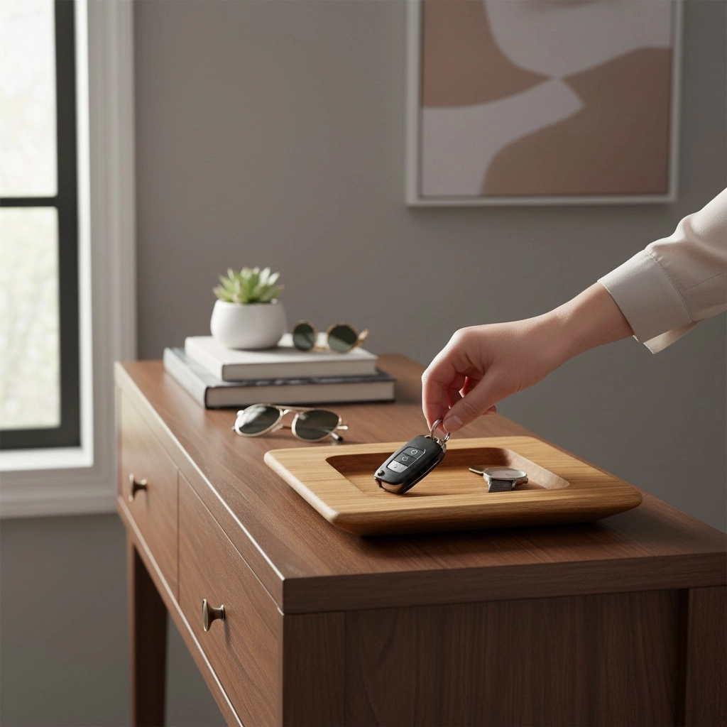 Questo vassoio in legno massello è un complemento elegante e versatile, pensato per valorizzare sia la tavola che gli spazi di casa. Il design lineare con incavo centrale crea un raffinato effetto cornice, ideale per presentare pietanze gourmet, antipasti, dolci o finger food con uno stile moderno e minimale. La superficie liscia e le venature naturali del legno donano calore e autenticità, rendendo ogni pezzo unico. Oltre all’utilizzo in cucina, può trasformarsi in un pratico svuota tasche da ingresso per riporre chiavi, portafoglio e piccoli oggetti, oppure in un vassoio elegante per organizzare profumi e accessori su una cassettiera o in bagno. Robusto e resistente, unisce funzionalità ed estetica in un unico accessorio d’arredo. Perfetto per chi ama i materiali naturali e desidera un oggetto decorativo ma anche pratico per l’uso quotidiano.