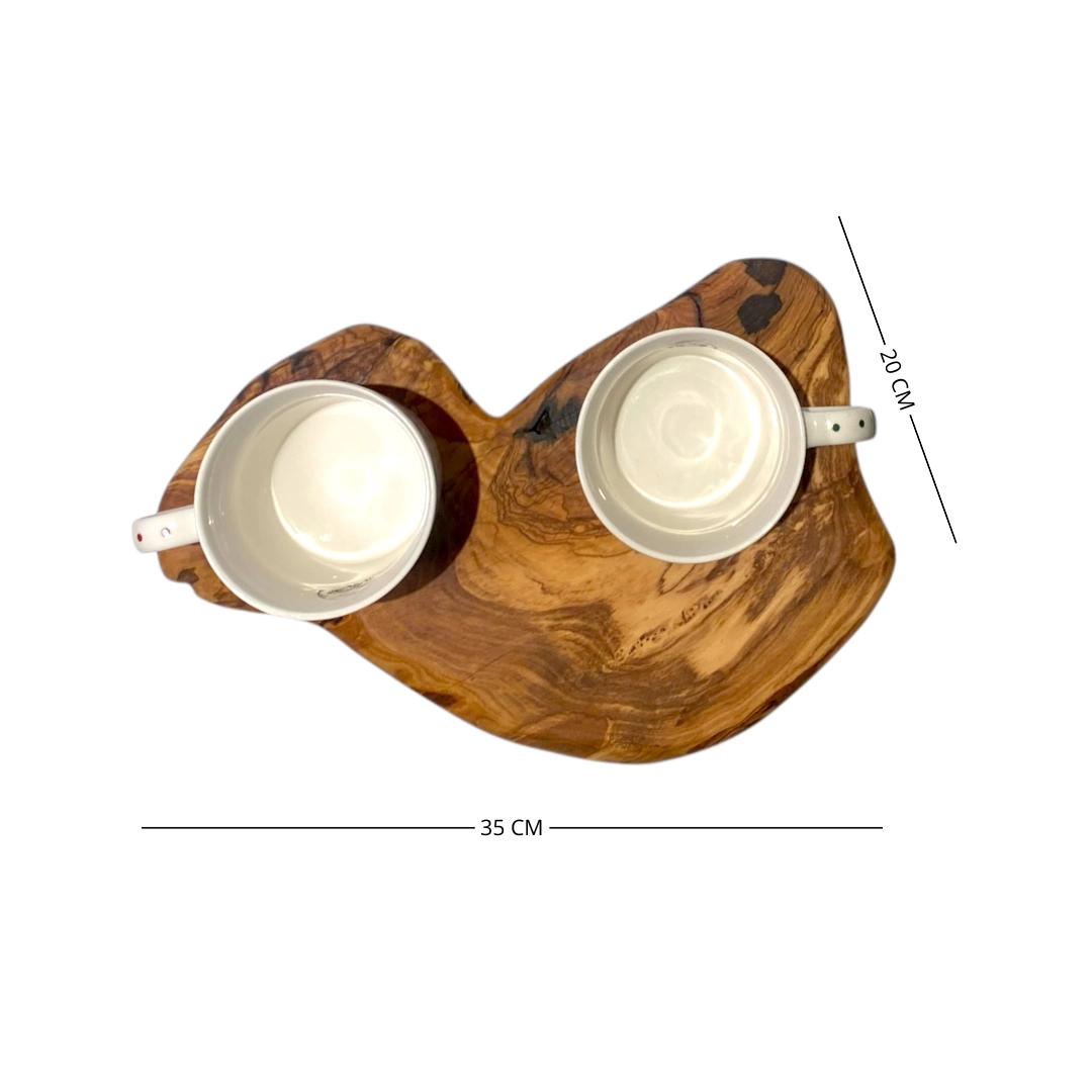 Set Natalizio con Vassoio in Legno di Ulivo e 2 Tazze Merry Christmas